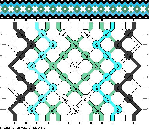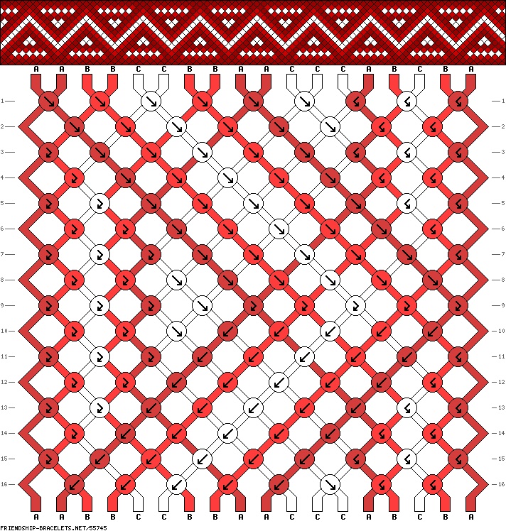 Kis gyakorlás után bátran kezdj bele bonyolultabbnak tűnő mintákba. Az alábbi minták tartalmazzák a színek elhelyezkedését egymás mellett, és jelölik azt is, melyik szállal kell csomózni. További mintákat itt találsz.
