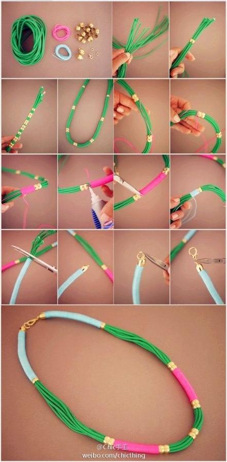 Előző bejegyzésemet folytatva most is egy szivárványszínekben pompázó ékszert hoztam. Nyári viselet, hiszen vidám, színes, és nem kell sok időt fordítani az elkészítésére.